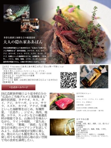 【大人のデートに】広島牛×旬の創作料理に舌鼓。《広島駅新幹線口5分》の隠れ家ダイニング**「ああばん」** 📝 喧騒を離れた大人の隠れ家で、特別な夜を過ごしませんか?🥂 広島駅新幹線口から徒歩5分の**「ああばん」**は、美食と美酒を愉しむ、上質な空間です。 自慢は、広島牛や瀬戸内海の旬の鮮魚など、地元の厳選食材を活かした創作料理。見た目も美しい一皿一皿が、五感を満たします。 料理を引き立てる厳選日本酒(「十四代」「新政」など)はもちろん、ワインペアリングもご用意🍷 記念日や誕生日には、サプライズ演出も可能🎉 「ああばん」で、心に残る上質なひとときをどうぞ。要予約で昼飲みのご相談も可能です! 🏷️追加キーワード(ハッシュタグ) #ああばん #広島グルメ #広島居酒屋 #広島駅グルメ #大人の隠れ家 #創作料理 #広島牛 #瀬戸内グルメ #記念日ディナー #広島デート #上質な時間 #日本酒 #銘酒 #食通 #エキキタグルメ #昼飲み #カウンター席 #サプライズ可能 #完全個室貸切 🍶ご予約はこちらから! [Google予約はこちらから]