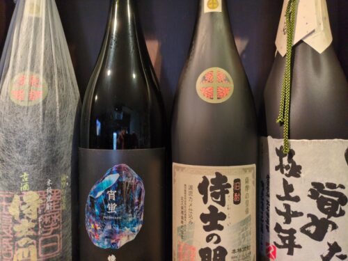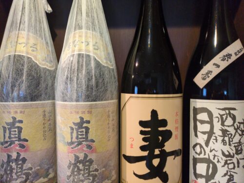 「妻」「月の中」「侍の門」「田倉」「八幡」や「ろかせず」といった、焼酎ファン垂涎の銘柄をはじめ、芋・麦・米など常時100種類以上の厳選焼酎を取り揃えております。