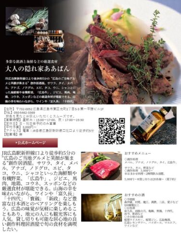 📱 大人の隠れ家ああばん ああばん #広島グルメ #広島ディナー #広島駅グルメ #広島駅近く 広島居酒屋 #広島観光 桜尾ジン SAKURAOGIN 十四代 新政 而今 日本酒好き 広島和牛 コウネ 広島飲み放題 地産地消 広島名物 広島接待 広島隠れ家 広島36周年 https://www.instagram.com/p/DXsizyWGfl5/?igsh=MWw2N3N5NXNyejg3OQ==